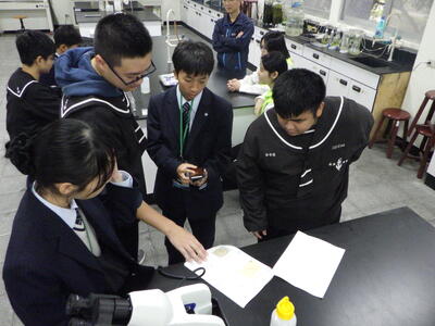 Marine Science Englishの授業で、タマキビガイの生態について実験を実施しました。今回の実験では、タマキビガイを入れた紙コップに海水を注ぎ、タマキビガイがどのように動くかを観察しました。