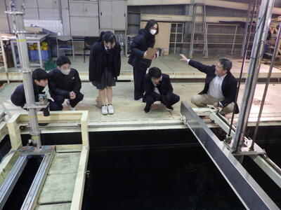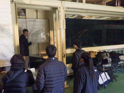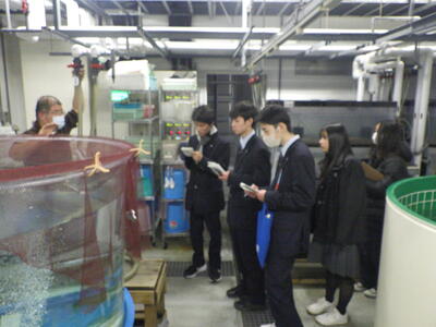 漁業科:飼育生物見学、実習内容及び設備見学、ヨット模型帆走実習