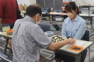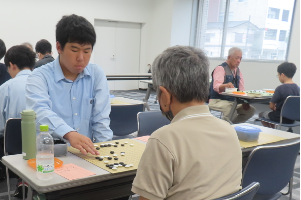 西岡さんは高校時代、高校生の囲碁大会(徳島県大会)で優勝され、全国大会に出場するなど活躍された方です。対局をとおして、良かった手や悪かった手、それぞれの局面でどこに打つべきかなど丁寧に分かりやすくご指導くださいました。
