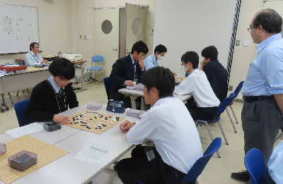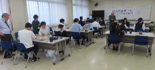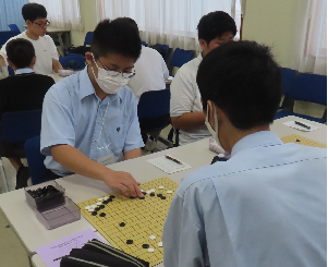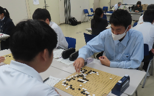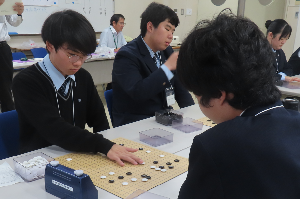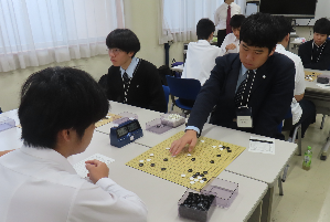 本校囲碁部にアマチュア六段の 新田 大也 さんがお越しくださり、指導碁(囲碁の対局をとおして指導)をしてくださいました